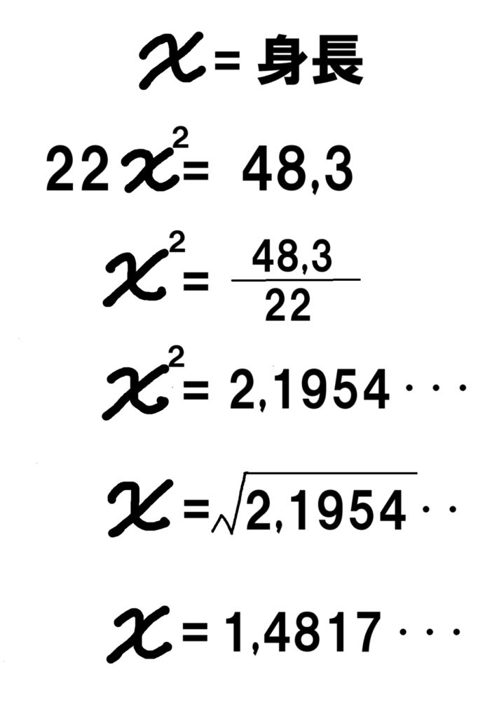 22(身長×身長)=体重、を解く。